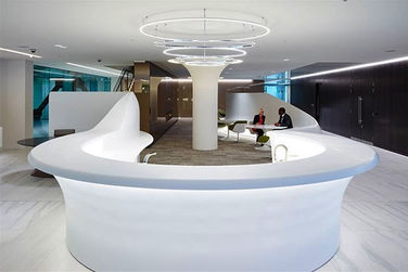 One of the most sought after qualities of solid surfacing is its aesthetic flexibility and formability. The design iterations of solid surfacing are virtually endless, definitely is a material created for innovation, and one upon which the most daring creative visions may flourish. Typically manufactured in sheet form, solid surfaces can be cast into endless variety of shapes, exemplified by the material’s usage across exterior cladding, wall panels, countertops, sinks and even sculptural art.